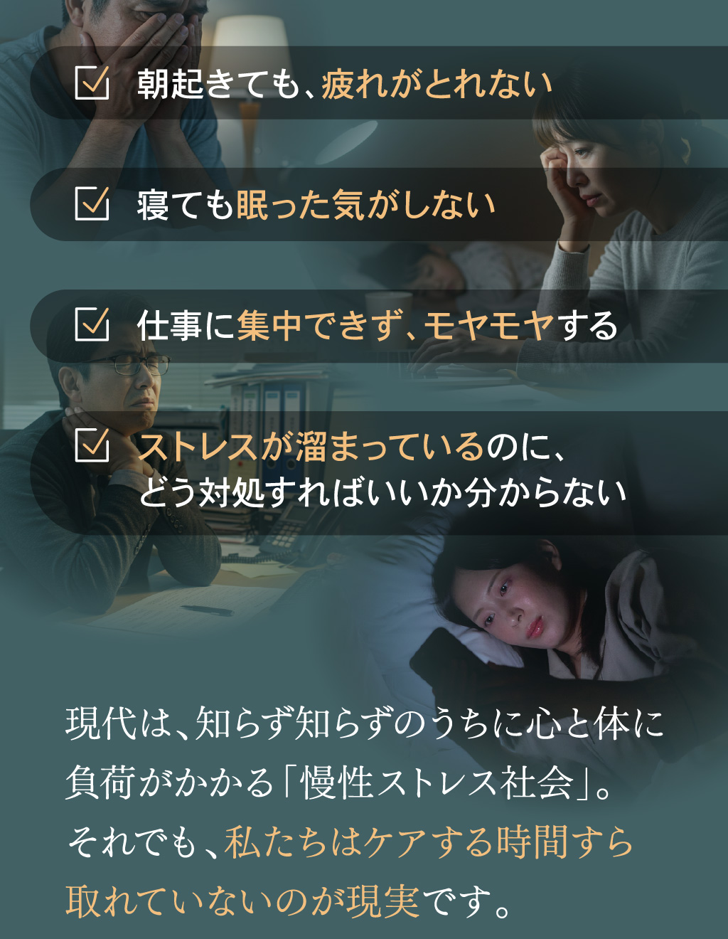 しかし現代では、さまざまなストレスによって、その眠りが妨げられています。