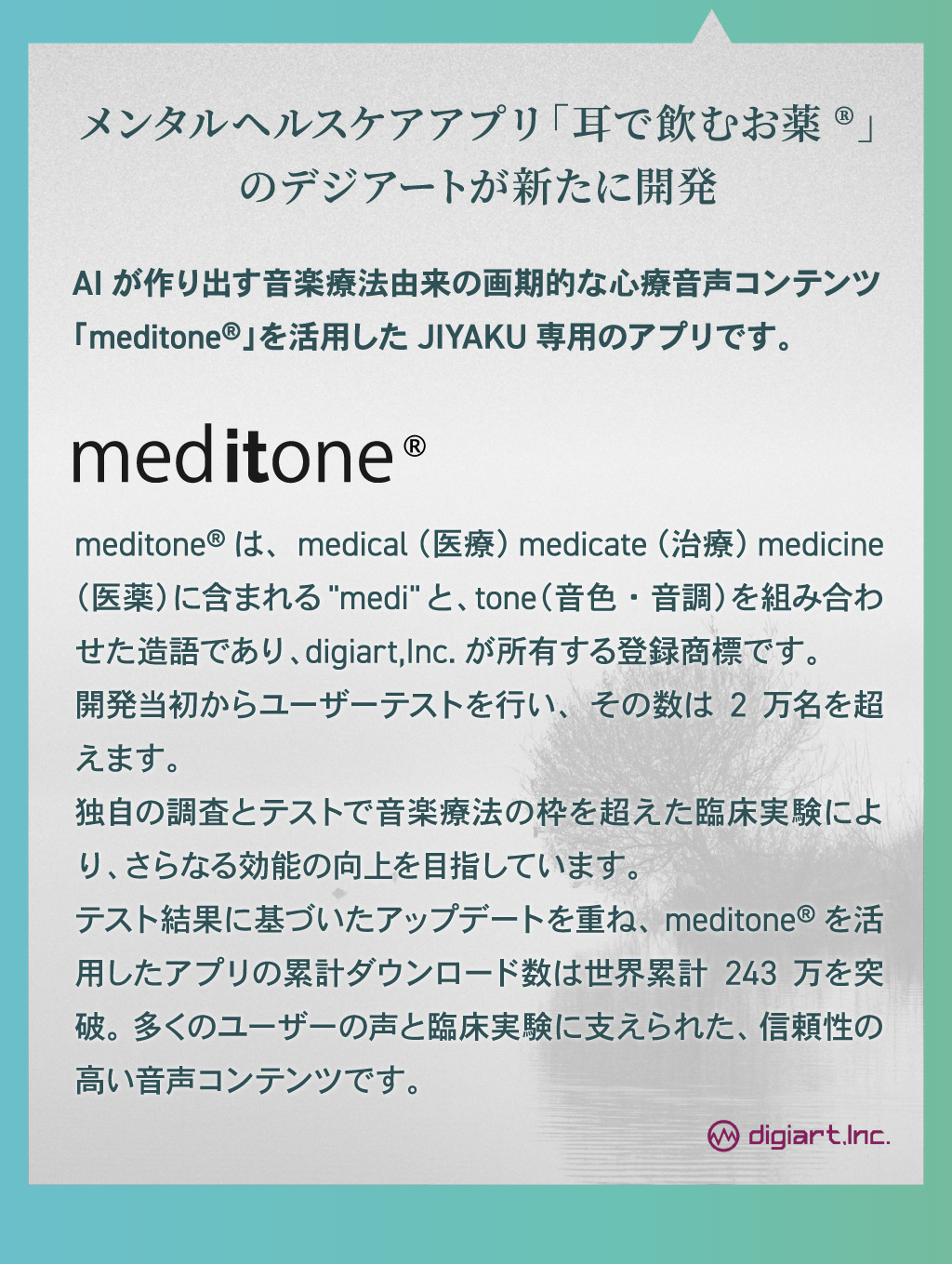 1. 「meditone®」とはAIが作り出す音楽療法由来の画期的な心療音声コンテンツです。