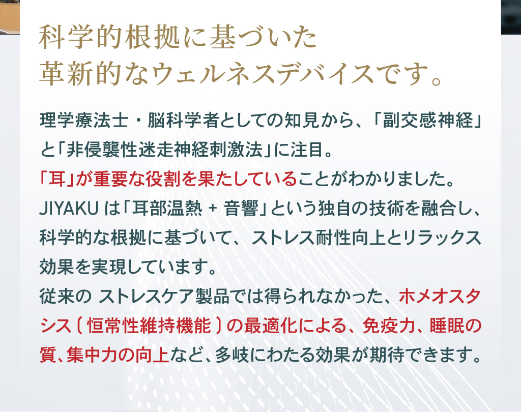 それが、“耳”への温熱刺激と、AI活用の音響刺激による自律神経と脳へのアプローチ